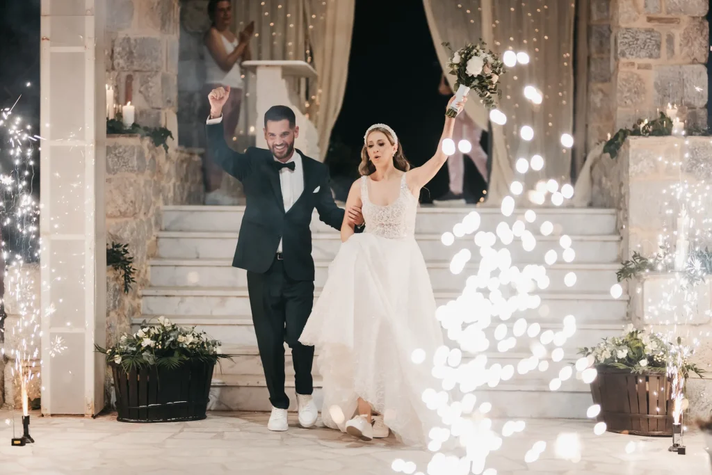 Giorgos and Eleni’s wedding was a charming celebration in the historic city of Sparta. The ceremony took place at the Evangelistria Church, beautifully adorned with rustic boho decorations that added a unique and personal touch to their special day. The couple’s love story continued with a stunning next-day photoshoot in the picturesque town of Monemvasia, capturing the essence of their romantic journey in a truly enchanting setting.